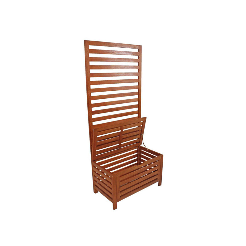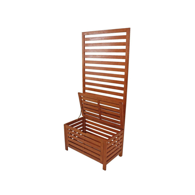 Kvalitní kombinace zástěny, lavičky a praktické integrované truhly z olejovaného eukalyptu (FSC 100%) obohatí každou domácnost. Její multifunkčnost šetří místo a umožňuje zástěnu na ochranu soukromí používat různými způsoby na zahradě, na balkoně nebo na terase.