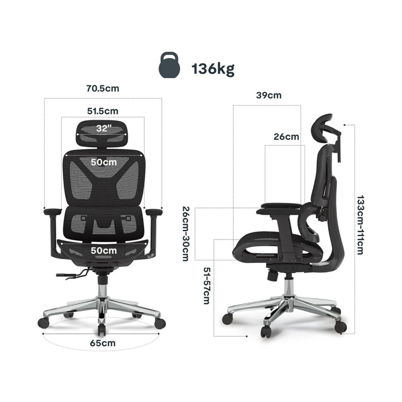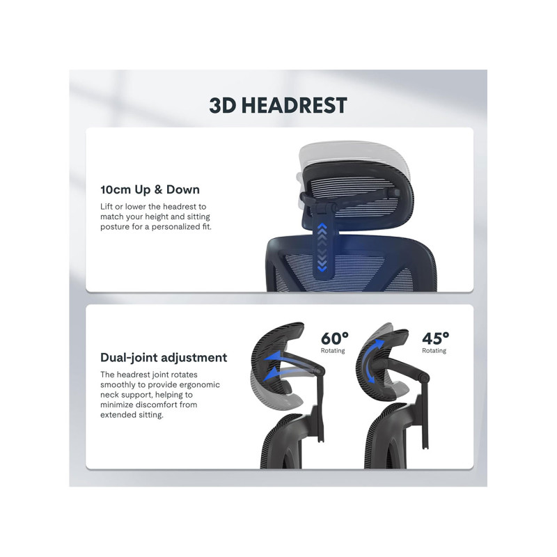Pokud trávíte hodně času u svého pracovního stolu, pohodlná a praktická kancelářská židle je ideální volbou. Hustě polstrované sedadlo, nastavitelná hlavová a bederní opěrka a sklopné područky zajišťují pohodlné sezení. Výšku sedáku lze nastavit od 45 cm do 55 cm pomocí pevné plynové pružiny a páky pro přizpůsobení různým velikostem těla a výšce stolu.