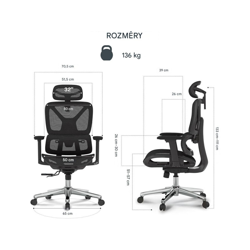 Tato otočná židle je vyrobena z prodyšné nylonové síťoviny, pěny s vysokou hustotou a odolného kovu. Robustní materiály zajišťují vysokou odolnost a stabilitu. Maximální nosnost je 136 kg.