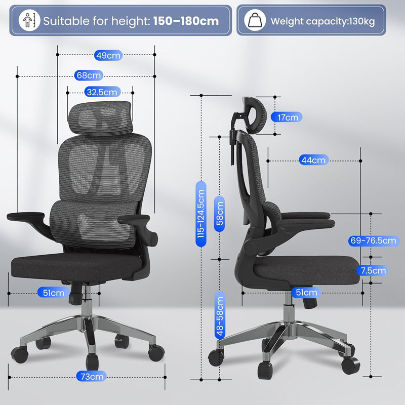 Tato otočná židle je vyrobena z prodyšné nylonové síťoviny, pěny s vysokou hustotou a odolného kovu. Robustní materiály zajišťují vysokou odolnost a stabilitu. Maximální nosnost je 136 kg.