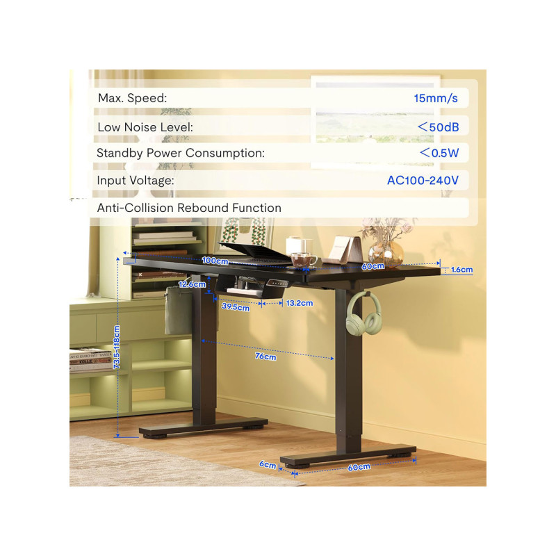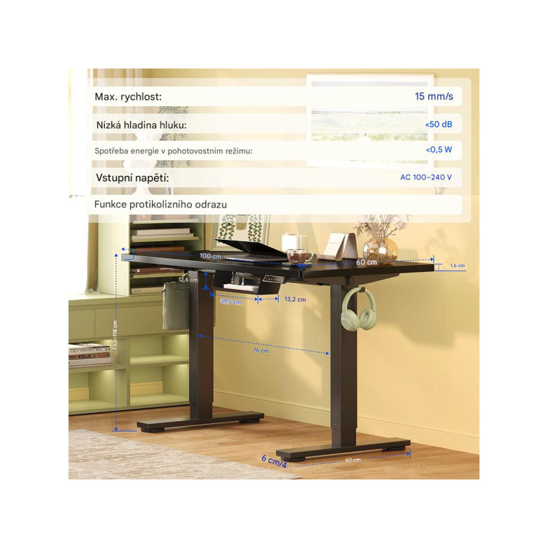 Elektrický stůl QE1B-1154-EUV1, 100 x 60 cm, černý - A
