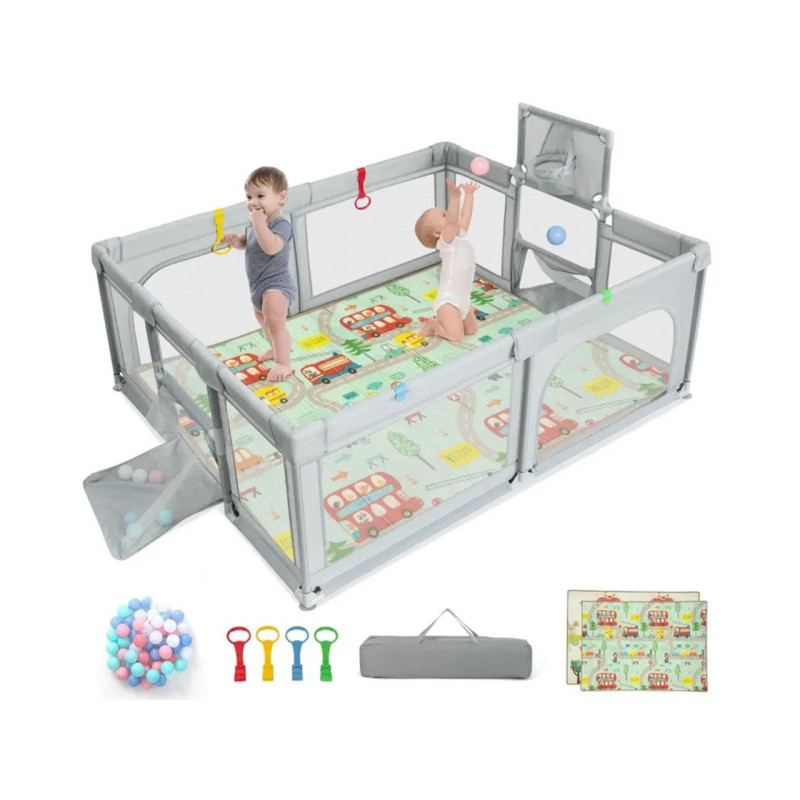 Dětská ohrádka BB6402DE-HS, 188 x 157 cm, světle šedá - A