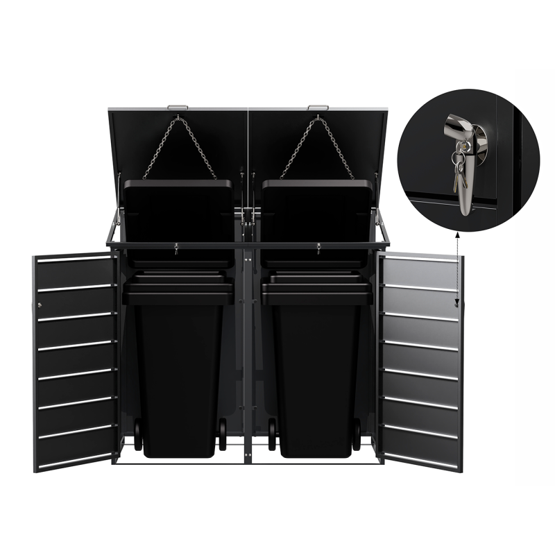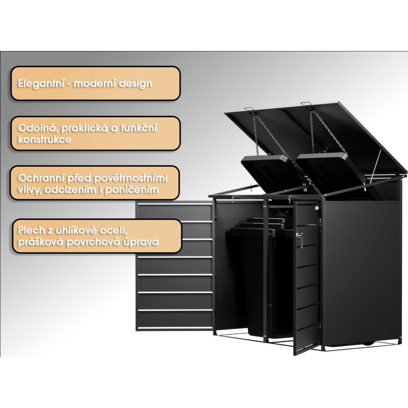 copy of Přístřešek na popelnice D07GG2, na 2 popelnice, celokovový kryt, moderní, antracit - N