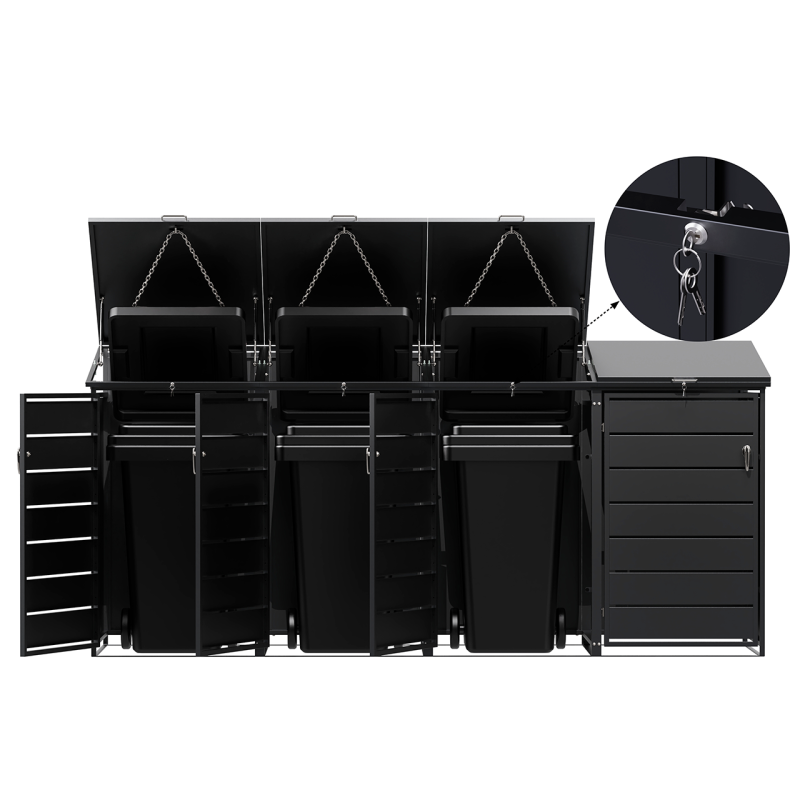 copy of Přístřešek na popelnice D01GW3, na 3 popelnice, celokovový kryt, moderní, antracit/hnědý - N