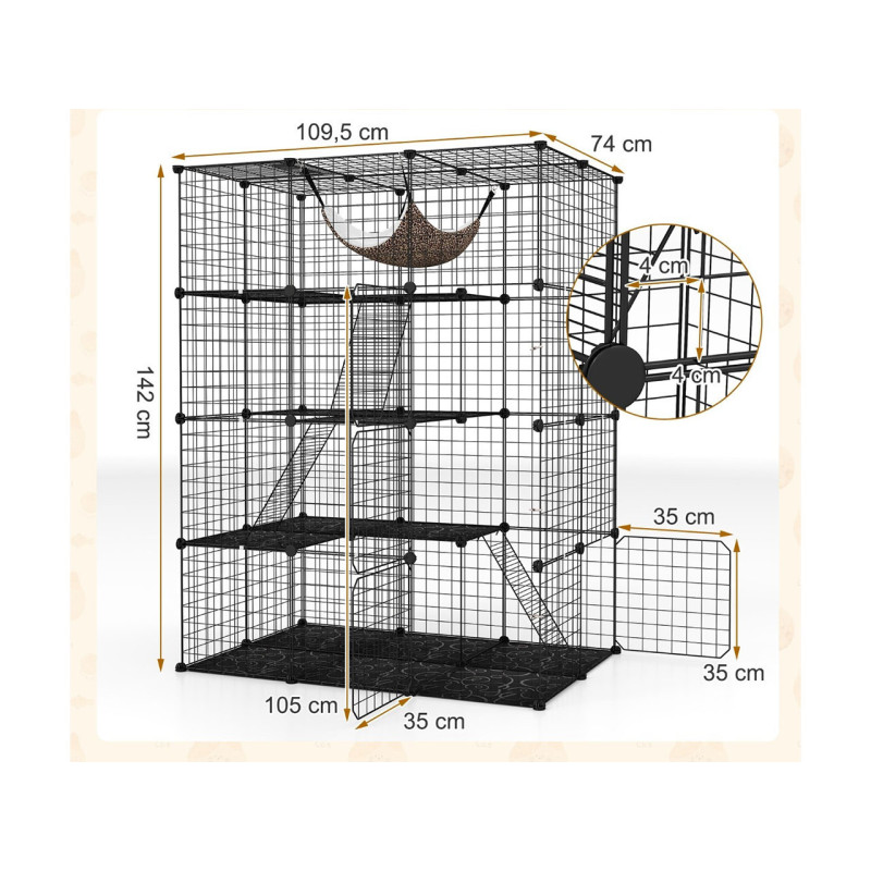 Velká čtyřpatrová klec PV10319BK, 109,5 x 74,5 x 143 cm, černá - A