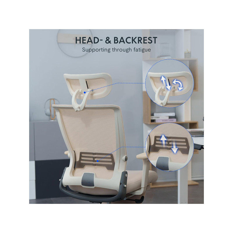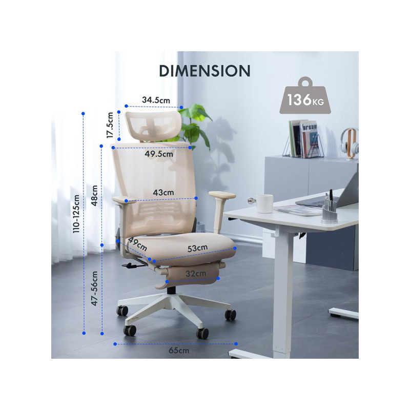 Pokud trávíte hodně času u svého pracovního stolu, pohodlná a praktická kancelářská židle je ideální volbou. Hustě polstrované sedadlo, nastavitelná hlavová a bederní opěrka a sklopné područky zajišťují pohodlné sezení. Výšku sedáku lze nastavit od 45 cm do 55 cm pomocí pevné plynové pružiny a páky pro přizpůsobení různým velikostem těla a výšce stolu.