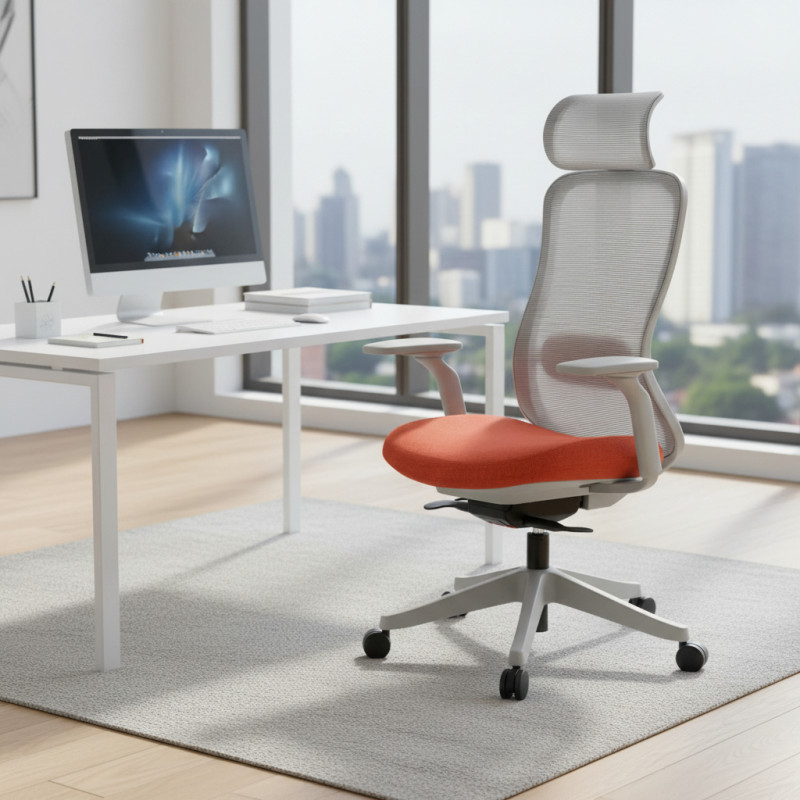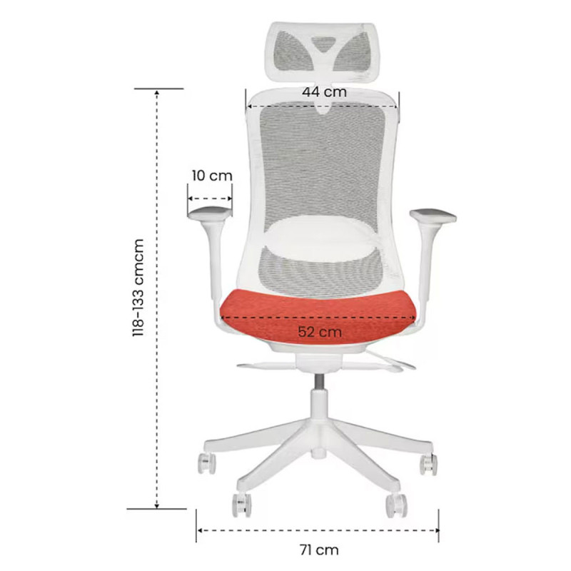 Jednodílné sedadlo a opěradlo jsou vyrobeny z pevné tvarované pěny a vysoce kvalitní PU kůže s dobrým prošíváním. Židle je podepřena kovovými nohami na pěti kolečkách. Tato židle je navržena tak, aby zlepšila vaše pohodlí při sezení.