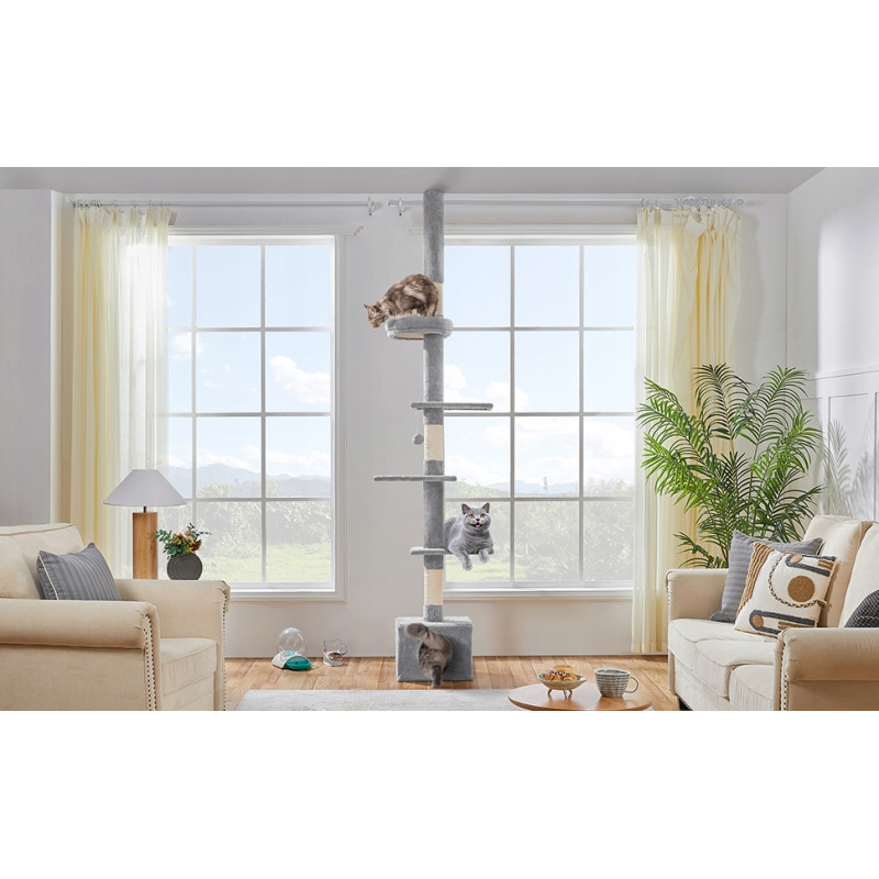 Tato kočičí věž vyrobená ze dřeva CARB Phase 2 a plyšového potahu šetrného k pokožce je navržena tak, aby poskytovala bezpečný, pevný a stabilní domov a zábavní centrum pro vaše andílky.