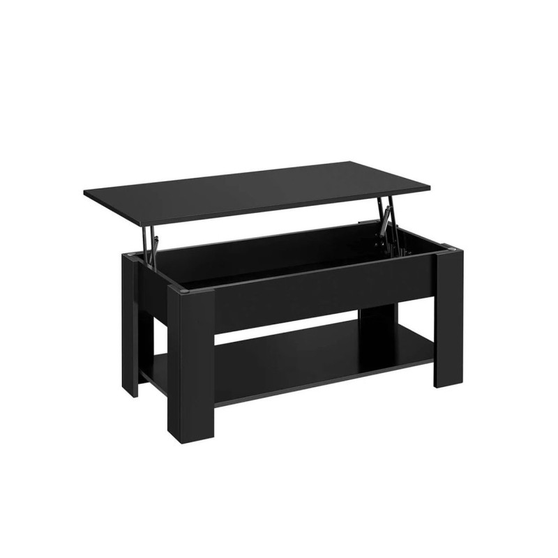 Konferenční stolek 613274 black, výškově nastavitelný obývací stůl s úložným prostorem, rozkládací stolek, odkládací stolek, černý, vysoký 41,8 cm