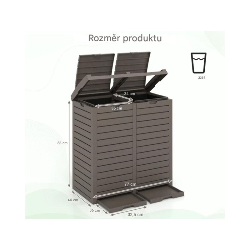 Dvojitý venkovní odpadkový koš GT4088CF se dvěma přihrádkami a rukojetí, hnědý - A